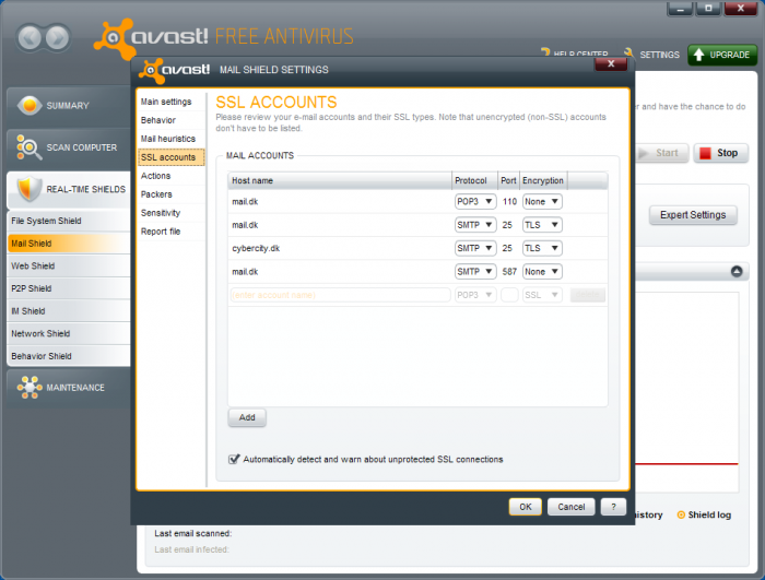- Klik på Mail Shield i menuen til venstre
